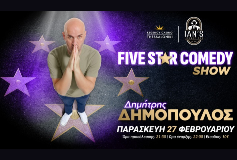 Είσοδος 2 ατόμων για την Stand up Comedy «Five Star Comedy Show» με τον Δημήτρη Δημόπουλο στο Ian’s Lounge Bar εντός του Regency Casino Thessaloniki | 27/02